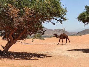 Arrêt au petit Sahara de Rsmouka avec possibilité de voir des chameaux, des berbères vous accueillent avec des scorpions …