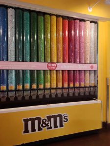 Avant de repartir nous savons fait une dernière halte au Rockfeller Center, devant la cathédrale Saint Patrick et un arrêt à Times Square à la boutique M&M’s. Construite sur plus de 2300 m2, elle offre trois étages de chocolats M&M’s  et de produits dérivés(casquettes, t-shirts,mugs…). Le dernier étage est le plus impressionnant avec un espace libre-service où vous pouvez faire tomber des M&M’s  depuis d’immenses tubes de toutes les couleurs qui montent jusqu’au plafond.