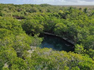Une française nous a conseillé d’aller plus au nord à la plage Esmeralda beaucoup plus sauvage. Il y a un petit cenote qui rejoint la mer. Du coup, c’était notre balade du matin.