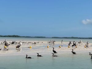 Pour la deuxième excursion nous hésitions entre la lagune de Bacalar et l’ïle d’Holbox . Nous avons choisi l’île d’Holbox car beaucoup moins d’heures de route (1heure et demie au lieu de 3 heures pour Bacalar). Nous avons fait un arrêt au Cenote de Yalahau avant d’arriver sur l’Ile d’Holbox. Après une pause déjeuner dans le village nous sommes partis en bateau sur la plage de Mosquito. Belle plage avec la mer transparente, beaucoup d’oiseaux mais pas de poissons multicolores dans l’eau..
