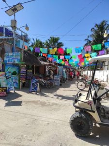 Nous avons testé les collectivos, qui sont des taxis collectifs, pour aller à Tulum mais c’était compliqué pour aller en bord de mer qui est éloignée du village. Il a fallu trouver un autre collectivo pour s’y rendre , il n’y avait que des hôtels et une mer agitée. Nous avons regretté de ne pas nous être arrêtés aux ruines. Nous n’étions pas trop rassurés par la conduite des chauffeurs.