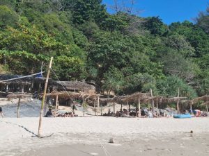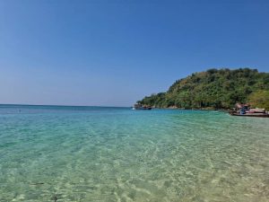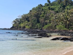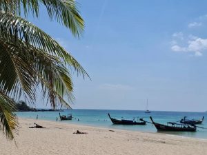 C’est la plage où on peut accéder après le Monkey Trail. Le chemin en bois a été refait mais beaucoup de déchets en plastique le long du parcours. A l’arrivée sur la plage, deux gros bateaux remplis de matériaux sont amarrés pour le chantier de l’hôtel Centara situé à l’arrière de la plage, qui est en pleine rénovation. Du coup, la plage n’a pas le même charme. Elle retrouvera certainement sa beauté quand les travaux seront terminés. A voir en 2027…