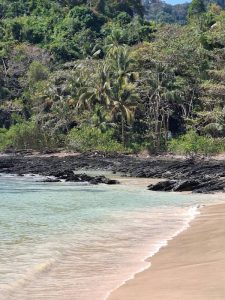 C’est une petite plage isolée avec de l’eau claire. Nous en avons profité pour déjeuner dans le petit restaurant au bout de la plage fort agréable.