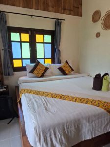 Nous avons payé 330 euros la chambre par couple avec petit déjeuner Cet hôtel situé à Klong Khong Beach, situé en bord de plage, est composé de petits bungalows calmes, propres et bien équipés. Il possède une piscine à débordement située face à la mer ainsi qu’un restaurant et un bar à la décoration bohème, en bois flotté. L’ambiance était relaxante, parfaite pour admirer les couchers de soleil tout en étant proche de la route principale avec ses nombreux restaurants et de la vie locale.