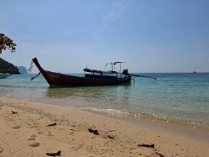 Dernier arrêt pour manger sur la plage Charlie Beach, une des plus belles de l’île de Kho Muk et baignade jusqu’à 14h avant le retour à 16h sur Kho Lanta. Les îles Trang sont plus sauvages mais elles sont habitées et proposent des offres d’hébergement, il est possible d’y rester quelques jours, en prenant des ferrys qui partent du port de Saladan.