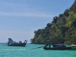 Située en face d’Ao Nang, c’est une île magnifique avec une mer translucide et la possibilité de faire du snorkeling. Elle fait partie de l’excursion des 4 îles mais vous pouvez aussi vous y rendre par vous-même en achetant un ticket au même kiosque que pour aller à Railey. Il faut compter 300 baths par personnes et 200 baths pour le droit d’entrée dans le parc naturel car Kho Poda est une île protégée. Vous partez quand il y a 8 personnes par bateau (ça se remplit vite, vous n’attendez pas longtemps), l’heure du retour est fixée avec le capitaine du bateau qui revient vous chercher avec le même groupe qu’à l’aller.