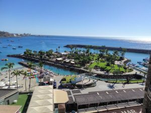 Hébergement Appartement 2 chambres à Playa del Cura dans le sud de l’île réservé sur Booking Luxuriösen Apartment am Meer Golfplatz, Strand (350 € pour 3 nuits pour 3 personnes) . La résidence est située à côté du golf